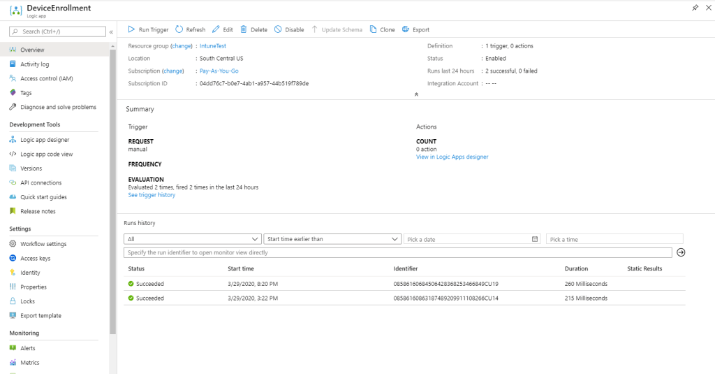 Congrats! You now have an example Logic App for processing information from Intune and inserting it into ServiceNow! As mentioned, this is one way to achieve this task. ServiceNow provides multiple ways to integrate via API, but this is a great starting point with using Logic Apps.