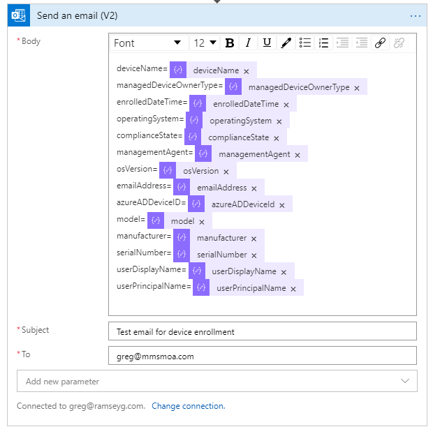 Start by cloning your current DeviceEnrollment Logic App so that you have a backup, and then in your DeviceEnrollment Logic App, remove the send email step we created in the previous article.